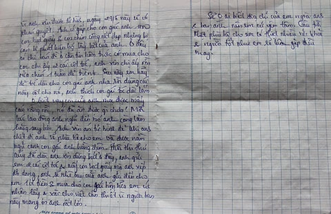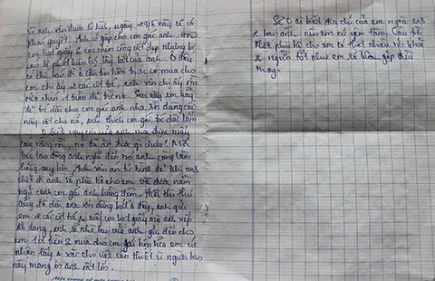 Bức thư được cho là người cha của em bé gửi Trâm về việc gửi gắm con mình cho cô nuôi dưỡng vì anh ta chờ thi hành án tử hình. Ảnh: H.LAN