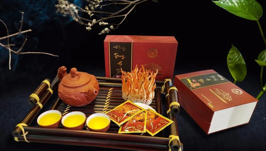 Sản phẩm nấm đông trùng hạ thảo SAHA ra mắt thị trường. Ảnh: NH