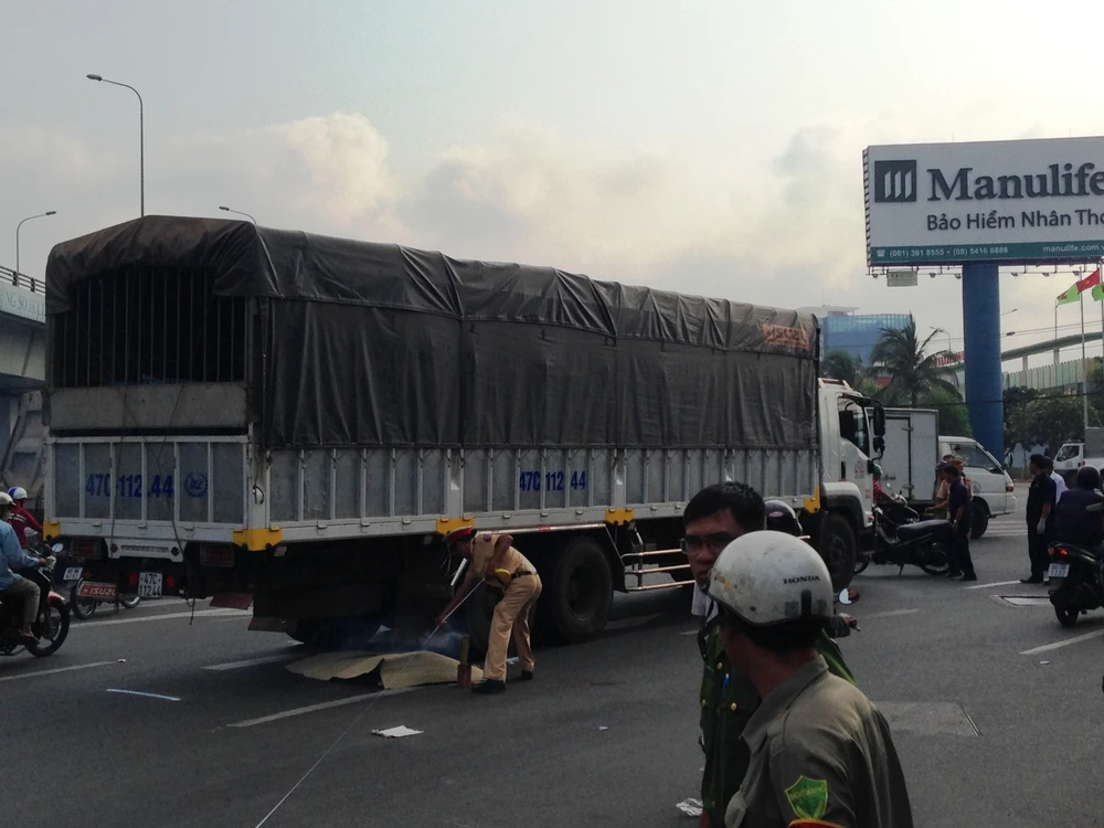 Người điều khiển xe máy là một cô gái (khoảng ngoài 20 tuổi) ngã xuống đường tử vong tại chỗ.