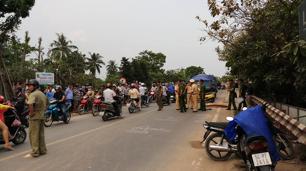 Nhận tin báo, lực lượng chức năng quận 12 có mặt xử lý hiện trường, lấy lời khai các nhân chứng để điều tra làm rõ nguyên nhân vụ tai nạn.