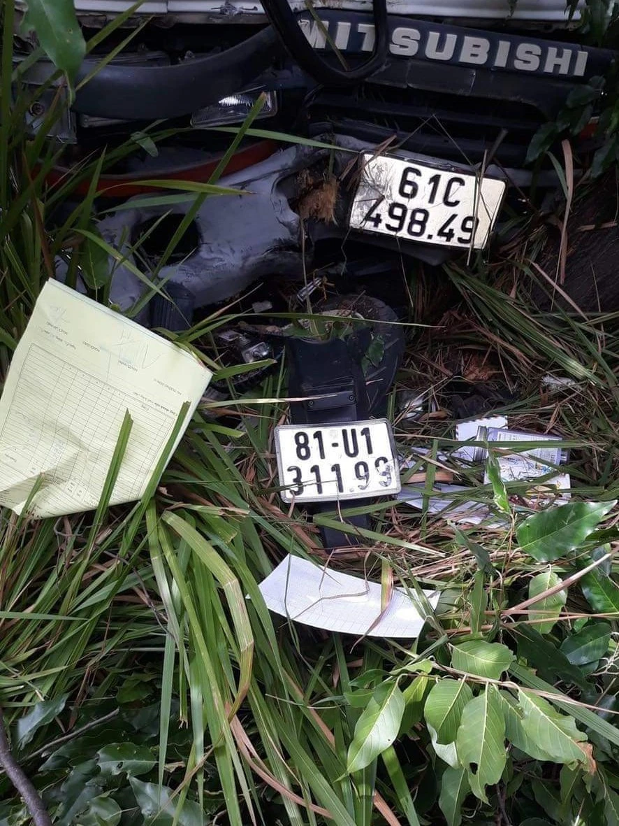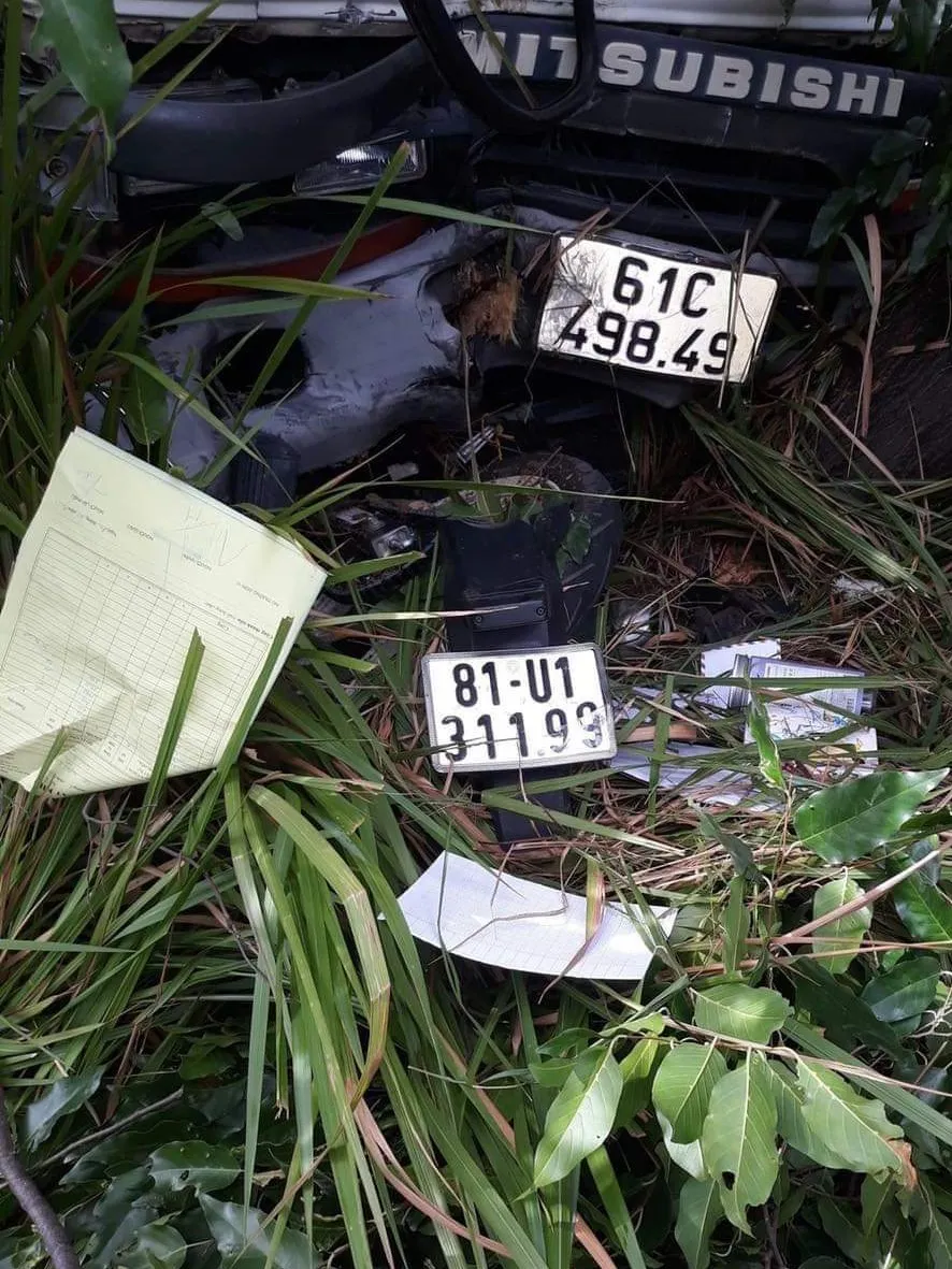 Chiếc xe tải chỉ dừng lại khi đâm vào một gốc cây ven đường, cú tông mạnh khiến một cây lớn đổ gãy.
