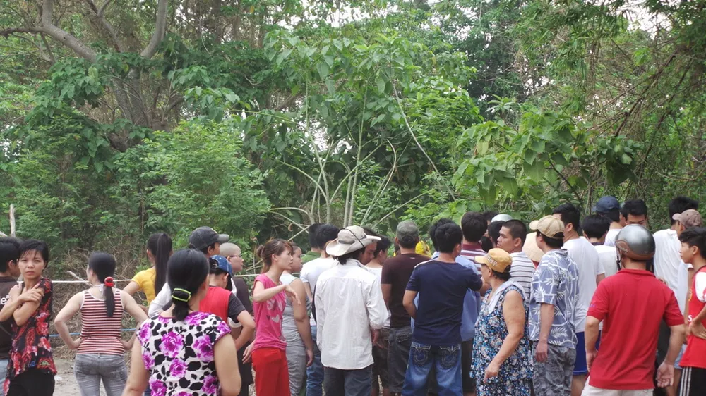 Rất đông người hiếu kỳ tập trung chứng kiến vụ việc. Ảnh An Phước
