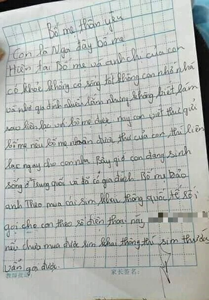 Mới đây, mạng xã hội ở Quảng Ngãi lan truyền hình ảnh bức thư của một người nói đang ở Trung Quốc hỏi thăm gia đình và để lại thông tin liên lạc. Người gửi thư được xác định là chị Hồ Thị Nga (27 tuổi).