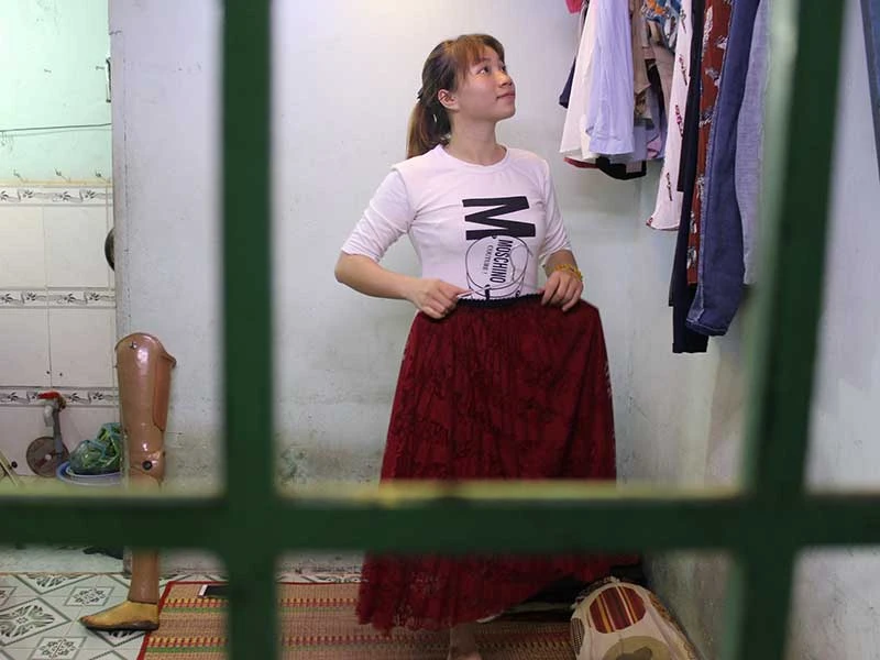 Trinh với một chân vẫn luôn lạc quan và vươn lên trong cuộc sống. Ảnh: H.LAN