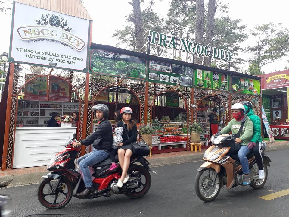 Hình ảnh người xe đông đúc trên đường phố Đà Lạt và Con đường trà, cà phê, rượu vang: