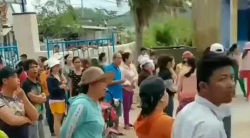 Nhiều phụ huynh kéo đến phân trường Mỹ Giang sau khi nghe tin có vụ tấn công giáo viên. Ảnh: cắt từ clip