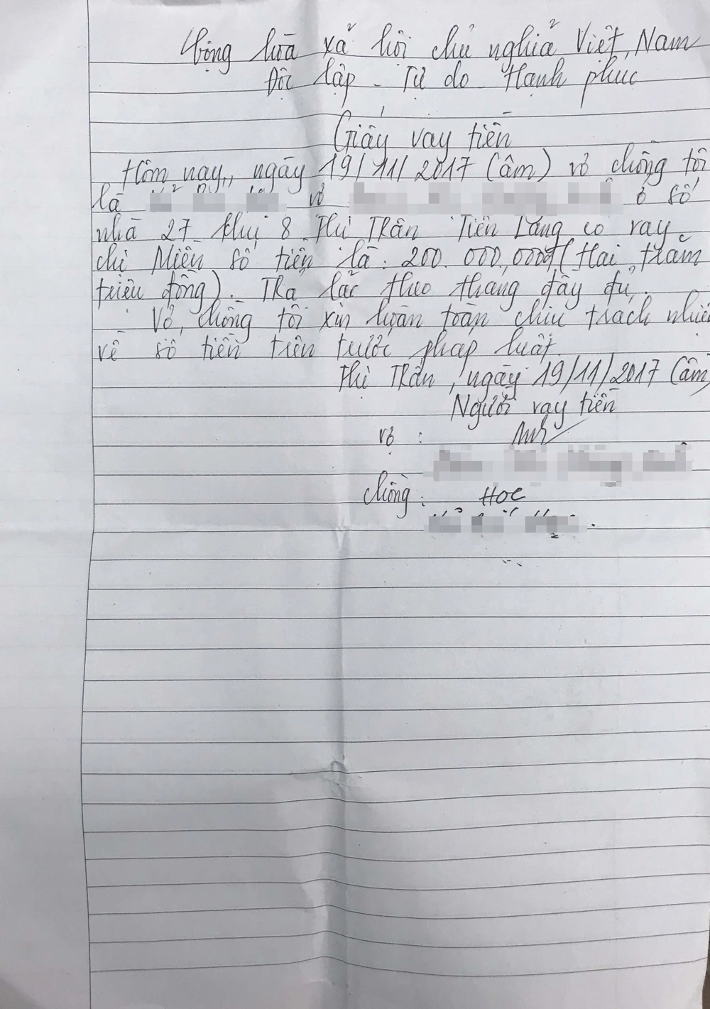 Giấy vay nợ mà vợ chồng cô giáo HA viết khi vay tiền.