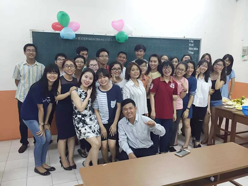 Cô giáo Trần Tố Linh (thứ 3, hàng đầu từ trái qua) cùng các học viên của mình.