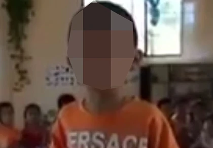 Ảnh bé trai kể lại việc mình bị bắt cóc lan truyền trên mạng. (Cắt từ clip)