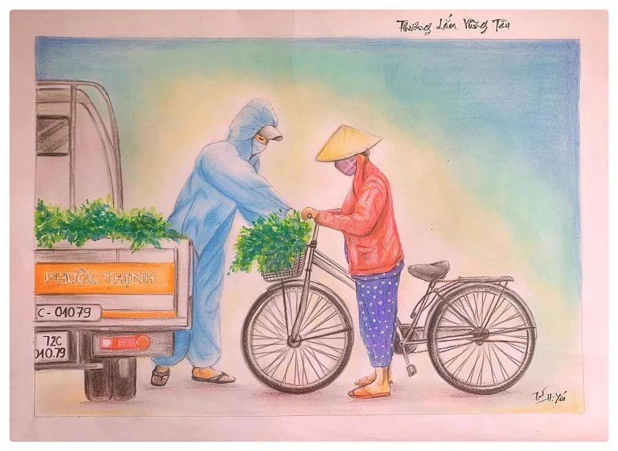 Ngày 1-9, cô Nguyễn Thị Hồng Yến (giáo viên môn Mĩ thuật, trường THCS Nguyễn An Ninh, TP Vũng Tàu), cho biết đã đấu giá thành công qua mạng xã hội Facebook 9 bức tranh do cô vẽ lấy tiền tặng tuyến đầu chống dịch.