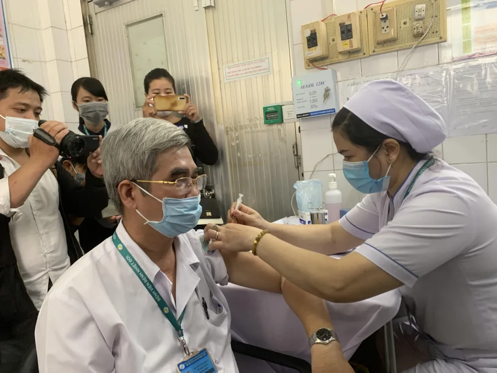 Nhân viên Bệnh viện Bệnh Nhiệt đới TP.HCM đang được tiêm ngừa vaccine COVID-19. Ảnh: HL