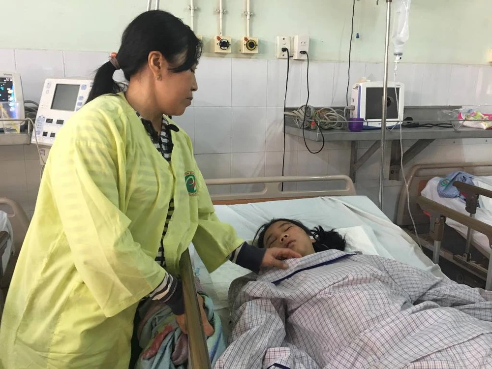 Em Võ Thị Quỳnh Hương vẫn đang hôn mê tại bệnh viện. Ảnh: NVCC