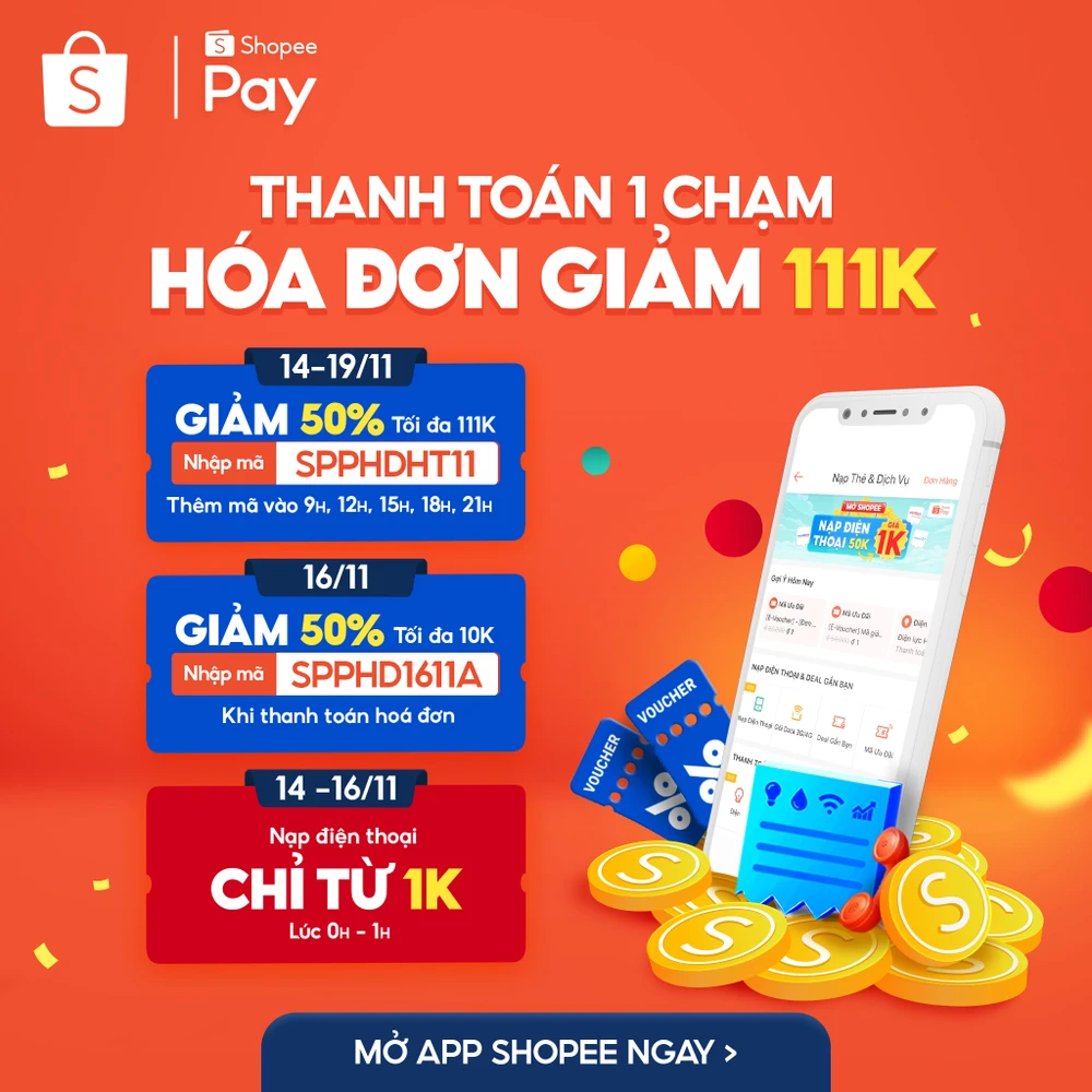 Từ ngày 14 đến 16-11, cả người dùng mới lẫn khách hàng thân thiết đều có cơ hội “săn” nhiều ưu đãi hấp dẫn tại sự kiện ShopeePay Day - Ngày vàng ưu đãi 50%. Nổi bật là các khuyến mãi áp dụng khi thanh toán hóa đơn như điện, nước, Internet…