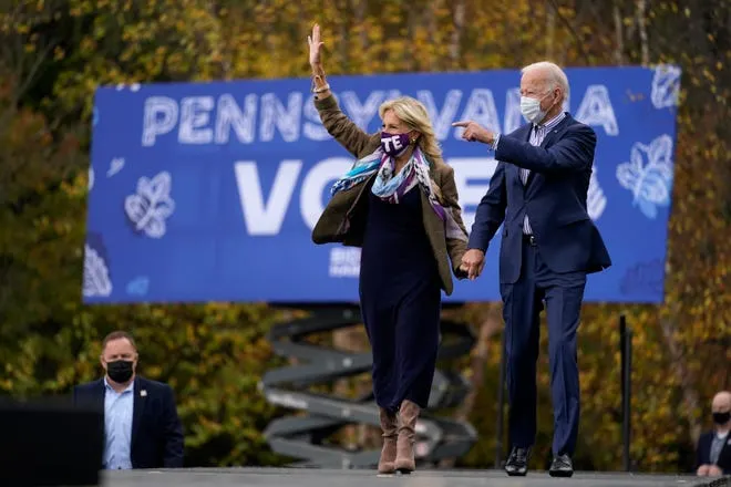 Ông Biden cùng vợ tranh cử tại bang Pennsylvania vào tháng 10. Ảnh: AP