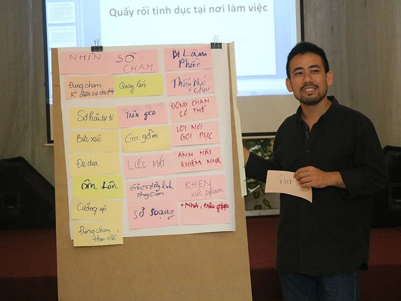 Tại buổi tập huấn, chuyên gia phát triển cộng đồng Phạm Hải Bình cùng các PV, cán bộ truyền thông quận Bình Tân đã trao đổi về định nghĩa và những biểu hiện của QRTD. Theo đó, QRTD là hành vi có tính chất tình dục gây ảnh hưởng tới nhân phẩm của nữ giới và nam giới, là hành vi không được chấp nhận, không mong muốn và không hợp lý, làm xúc phạm người nhận và tạo ra môi trường làm việc bất ổn, đáng sợ, thù địch và khó chịu (Tổ chức Lao động Quốc tế - ILO-2015).