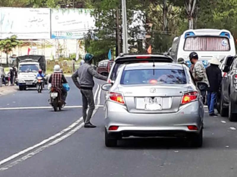 Khách đi xe mang biển số Lâm Đồng cũng bị “cò du lịch” tới làm phiền. Ảnh: CAO DIÊN
