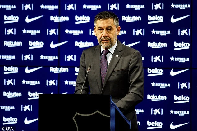 Ông Bartomeu trong cuộc họp báo sau cuộc họp Hội đồng quản trị Barca. ẢNH: EPA