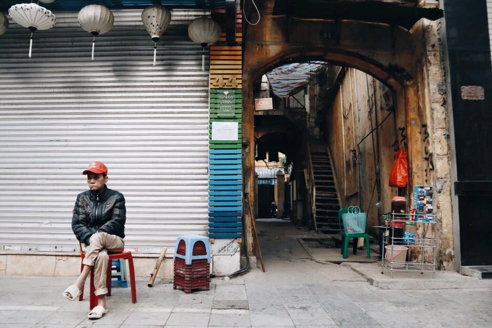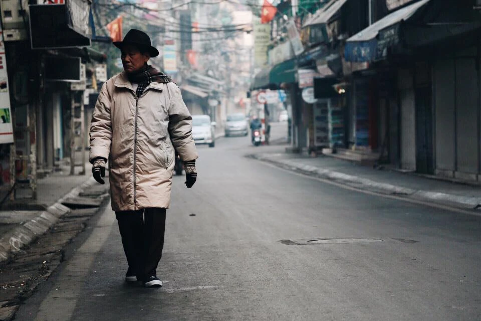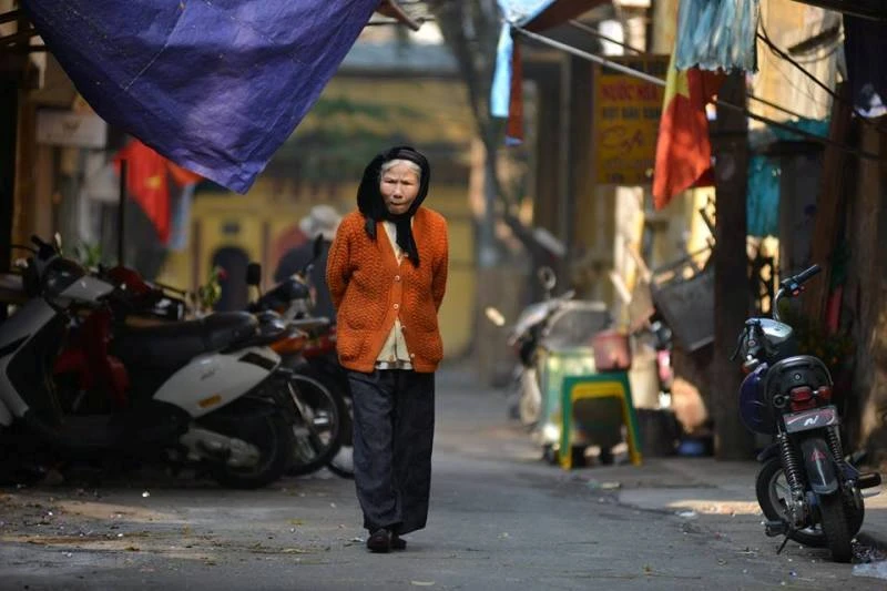 Những cụ già trầm ngâm trên phố vắng thưa người_Ảnh: Huy Kyo