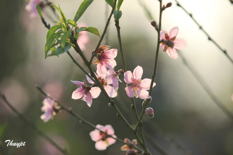 Những cành đào dịu dàng trong nắng sớm_Ảnh: Thu Thủy
