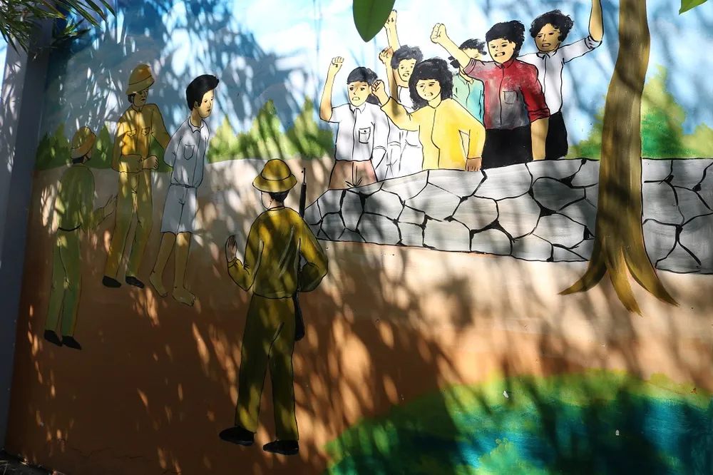 Bức tường trong khuôn viên Trường Tiểu học Nguyễn Văn Bá (đường số 359, phường Phước Long B, quận 9, TP.HCM) có năm bức vẽ hình ảnh anh Kim Đồng, chị Võ Thị Sáu, anh Nguyễn Văn Trỗi… miêu tả sự hy sinh của họ trong cuộc đấu tranh bảo vệ đất nước.