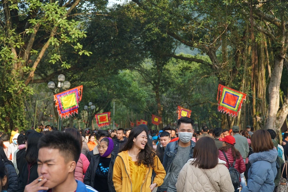 Dòng người đổ về đền Sóc dự hội trước các cảnh báo về dịch bệnh viêm đường hô hấp cấp do virus Corona. Ảnh: VIẾT THỊNH