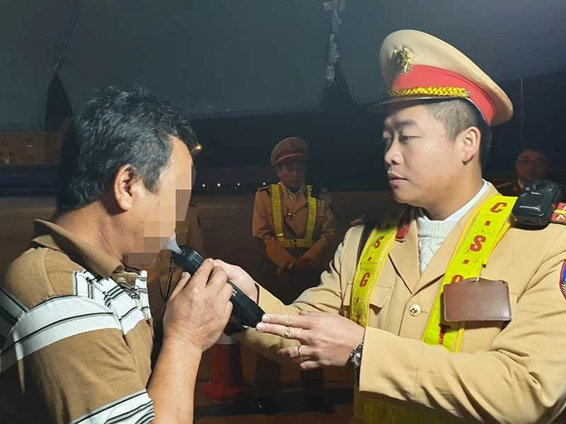 CSGT đo nồng độ cồn tài xế trên đường cao tốc Pháp Vân- Cầu Giẽ, Hà Nội. Ảnh: GT