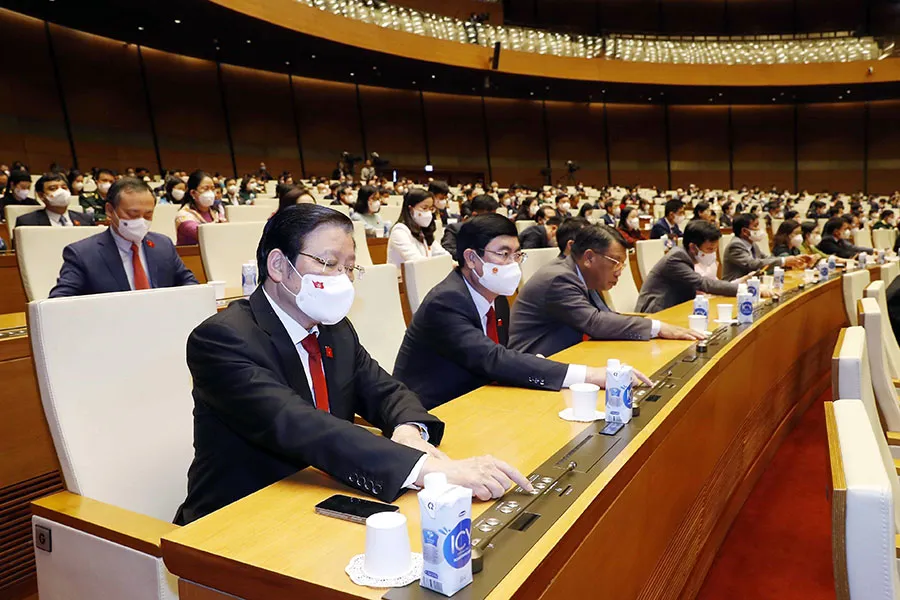 Các đại biểu Quốc hội biểu quyết thông qua nghị quyết tại kỳ họp thứ hai Quốc hội khóa XV. Ảnh: TTXVN