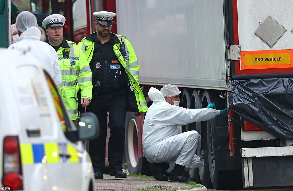 Tài xế Mo Robinson phát hiện 39 người đã chết khi mở cửa container tại Khu công nghiệp Waterglade, hạt Essex ngày 23-10 nên đã thông báo cho nhà chức trách. Cảnh sát tới hiện trường lúc 1 giờ 40. Họ bắt Robinson và ba nghi phạm với các cáo buộc ngộ sát và buôn người.