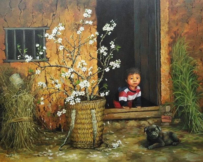 Cũng là nhà xưa, là hoa đào, hoa cải, nhưng một ánh mặt trong veo của một em bé, hay một mảng tường ủ màu thời gian, một bậc cửa thân thuộc sáng bừng trong nắng đủ làm trái tim người xem thổn thức vì thương nhớ.