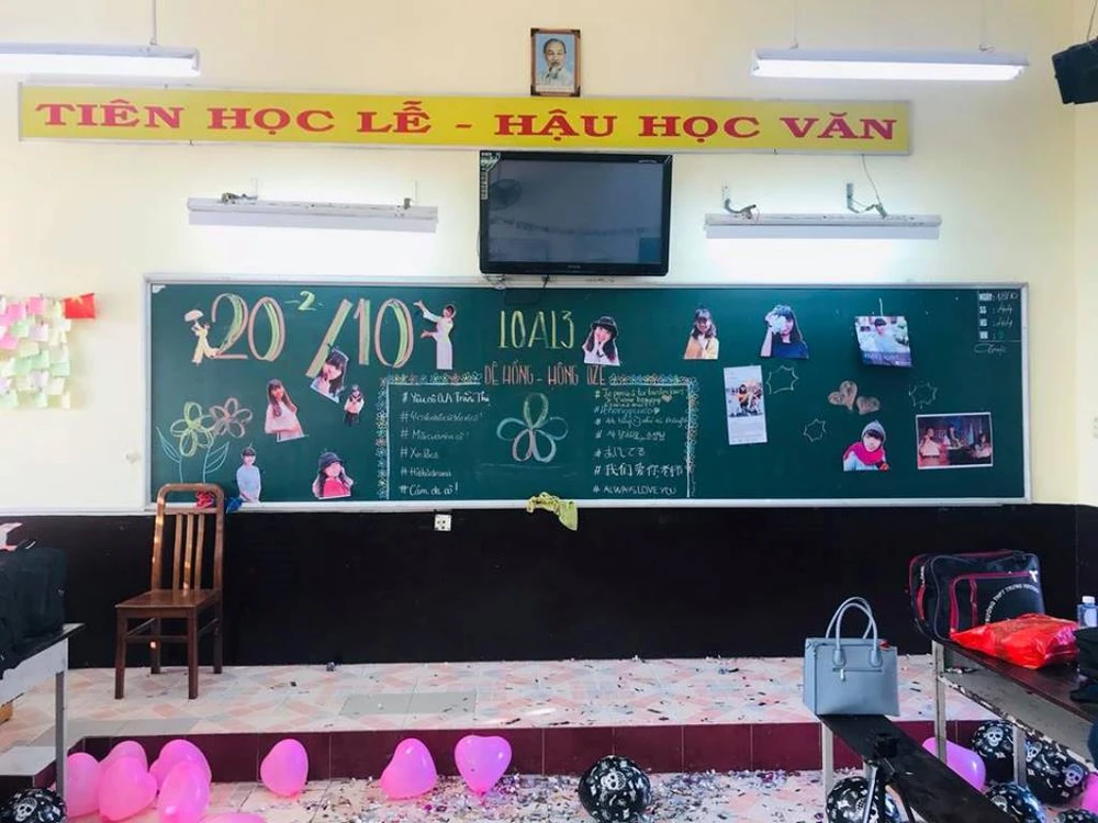 Tụi con chỉ tạo drama cho cô xíu thôi. Trái tim bé nhỏ bỗng bị tổn thương. Huhu sao mình lại có thể bị lừa như vậy. Rồi mấy bạn nam tặng hoa đã bí mật chuẩn bị cho mấy bạn nữ. Mấy bạn cũng bị bất ngờ phút chốc. Xong ngày 20.10 vui vẻ của tất cả chúng mình rồi đó”.
