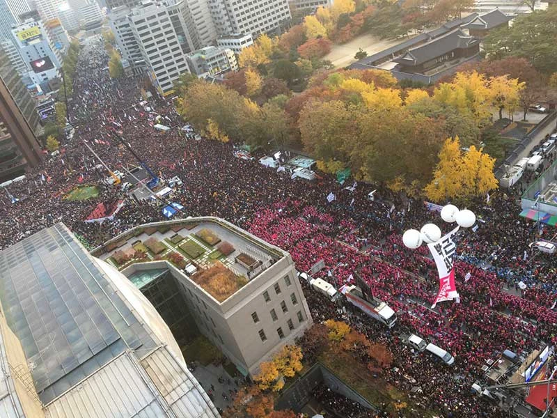 Trước đó, chiều 12-11 tại Seoul, 1 triệu người đã biểu tình đòi bà Park Geun-hye từ chức (ảnh). Ba đảng đối lập đã tham gia biểu tình. Trong hai ngày 11 và 12-11 (giờ địa phương), kiều dân Hàn Quốc cũng đã biểu tình tại 30 thành phố ở 10 nước.