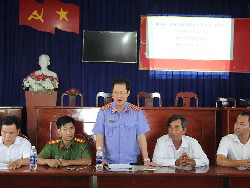 Ông Võ Gia Bình, Phó Viện trưởng VKSND huyện Bình Chánh, chủ trì buổi xin lỗi. Ảnh: HOÀNG GIANG