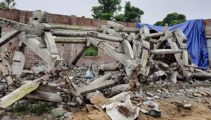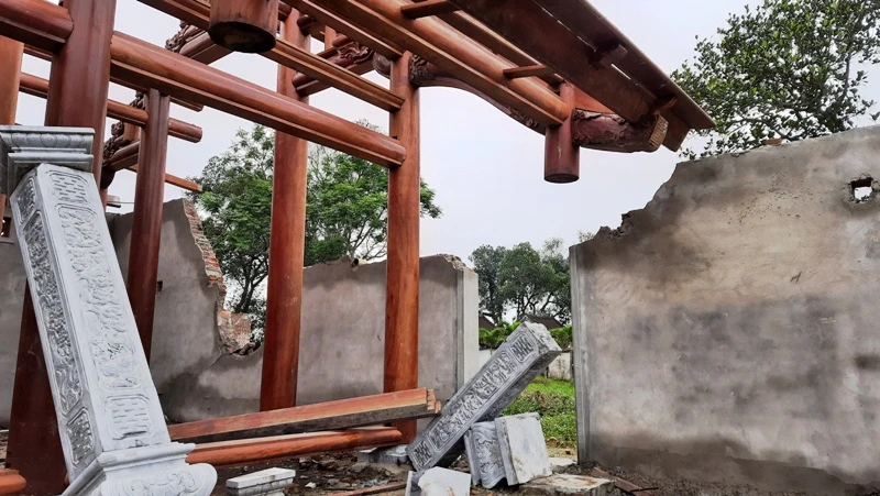 Công trình chùa Linh Sâm đã bị nhóm người mang máy móc vào tự đập phá hỏng. Ảnh: BĐL
