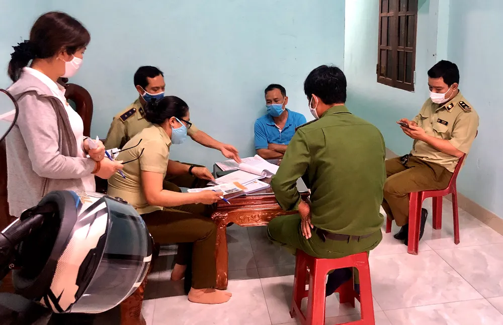 Lực lượng chức năng xử lý cơ sở vi phạm trong phòng, chống dịch COVID-19. Ảnh: L.Q.LOAN