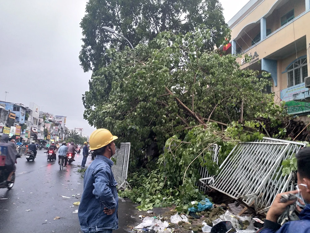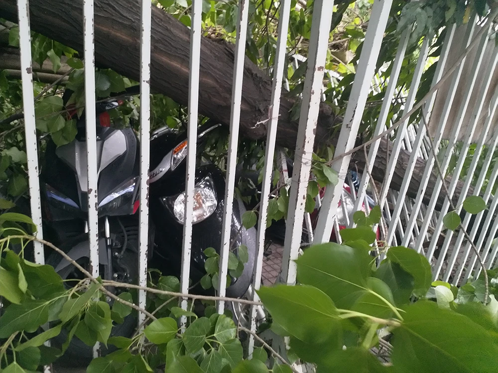 Ghi nhận tại hiện trường, cây cổ thụ cao khoảng 20 m, ngã đổ trúng gần 10 xe máy; hai tủ điện cùng một cây xanh gần đó cũng bị nghiêng đổ sau sự cố. May mắn vụ việc không gây thiệt hại về người.