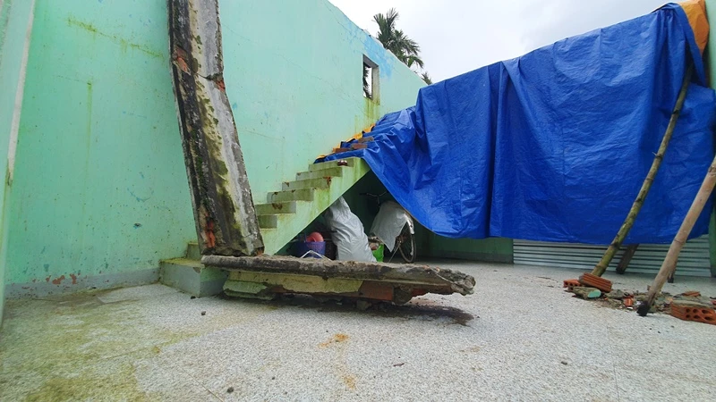 Ông Huỳnh Lúa, Chủ tịch Ủy ban MTTQ huyện Nghĩa Hành, cho biết bà con ở địa phương chủ yếu làm nông, thu nhập bấp bênh. Bão số 9 đánh sập khoảng 10 căn nhà cùng hàng trăm nhà khác tốc mái.