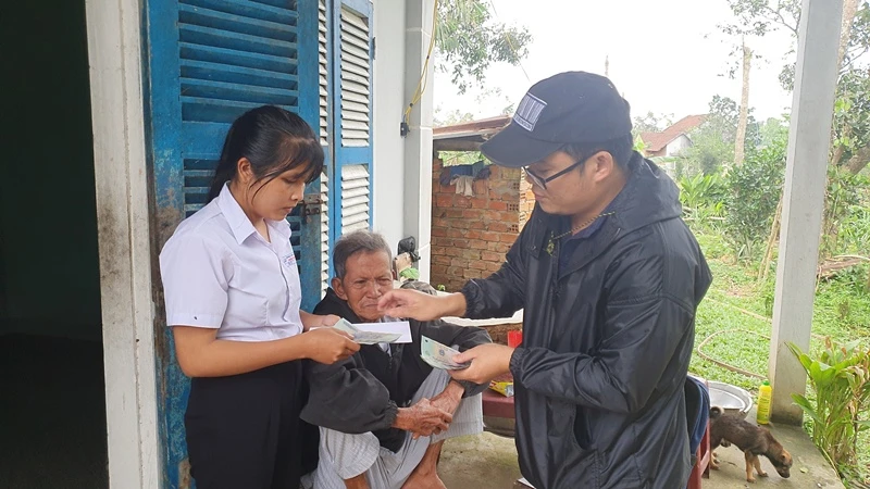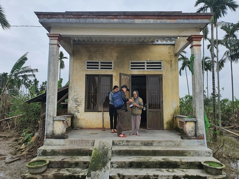 Trong ngày, đoàn cứu trợ đã trao số tiền do bạn đọc hảo tâm, mạnh thường quân của báo hỗ trợ cho 10 hộ khó khăn, thiệt hại nặng nề sau bão, mỗi hộ 10 triệu đồng.