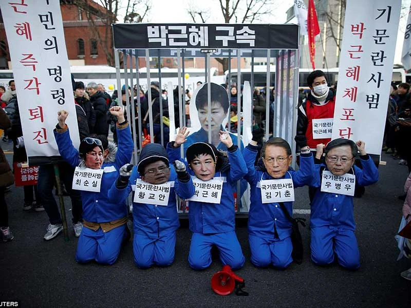 Trước đó, ngày 10-12, hàng trăm ngàn người đã tham gia đốt nến canh thức ở Seoul để hoan nghênh Quốc hội thông qua kiến nghị bãi nhiệm tổng thống (ảnh). Họ đã tuần hành về dinh tổng thống.