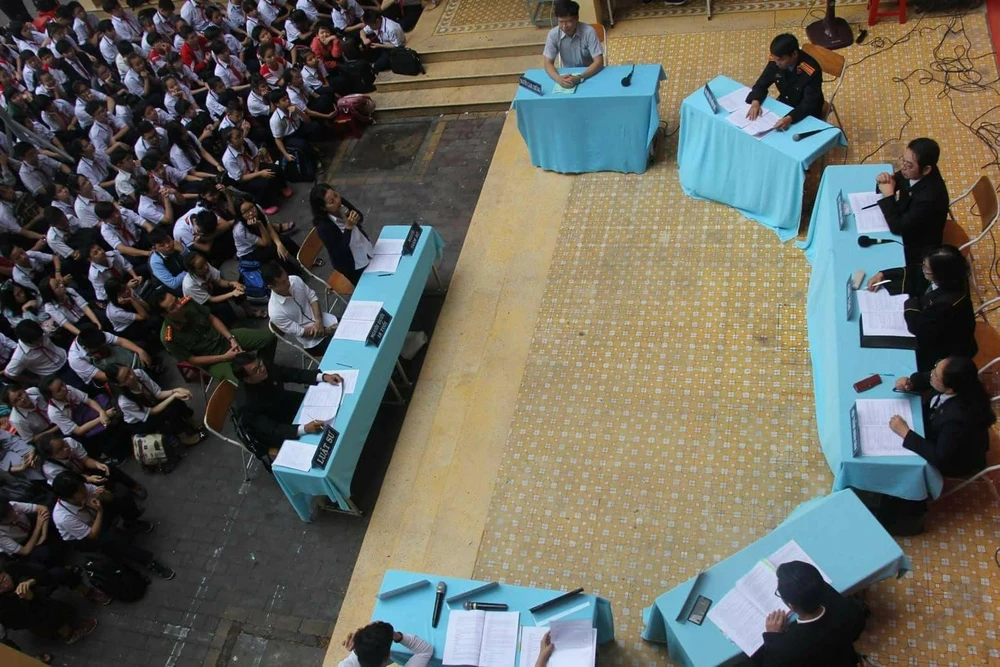 Gần 500 học sinh THCS Thăng Long, quận 3 tham dự phiên tòa giả định