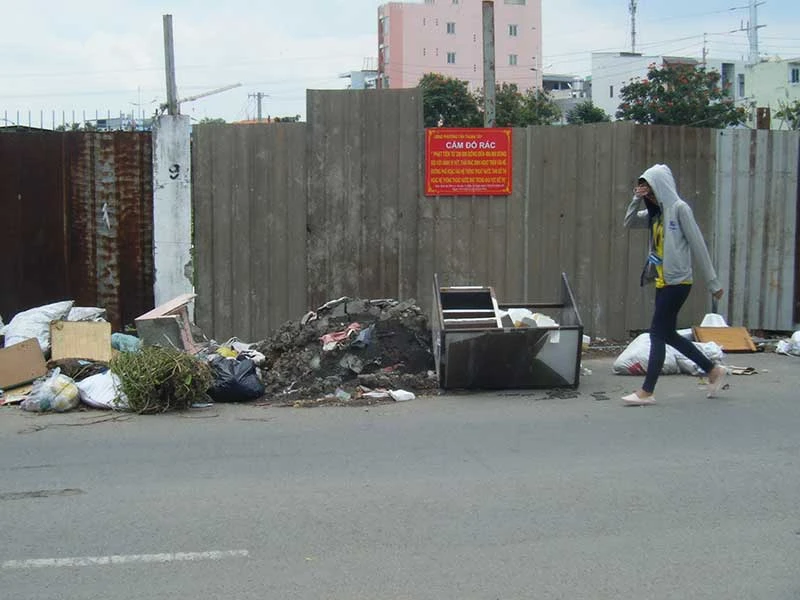 Mặc dù cơ quan chức năng đã gắn biển cấm đổrác rất to tại đây nhưng vẫn có một sốngười thiếu ý thức lén đổ rác bừa bãi ngay dưới biển cấm (ảnh).