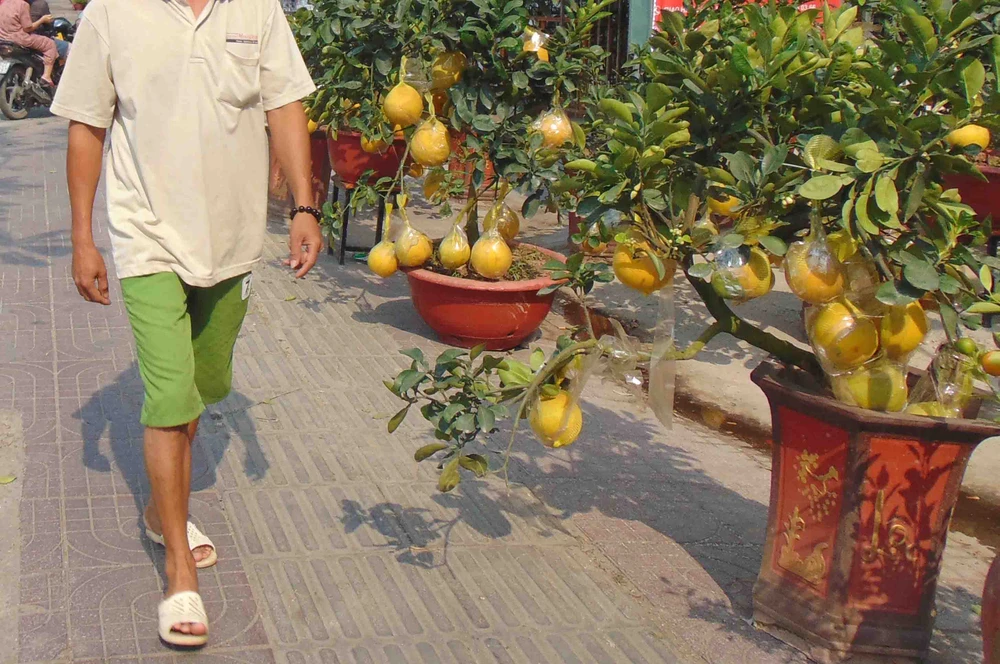 “Do bưởi kiểng chỉ dùng trang trí nhà cửa trong ba ngày Tết nên tôi dùng đủ loại thuốc trừ sâu và hóa chất trôi nổi. Do những thứ thuốc này rất độc hại nên tôi khuyên người mua không được ăn trái” – bà Mai nói thêm.