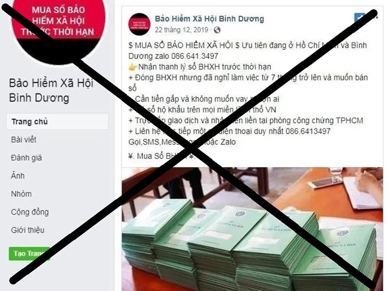 Thời gian qua, trên địa bàn TP.HCM, Bình Dương, Đồng Nai xuất hiện nhiều đối tượng sử dụng các trang mạng xã hội đăng thông tin mua sổ BHXH của NLĐ.
