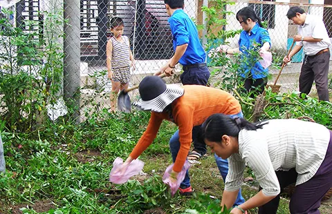 Nhân dân phường Đông Hưng Thuận (quận 12, TP.HCM) tham gia làm vệ sinh môi trường, phòng bệnh do virus Zika. Ảnh: TRẦN NGỌC