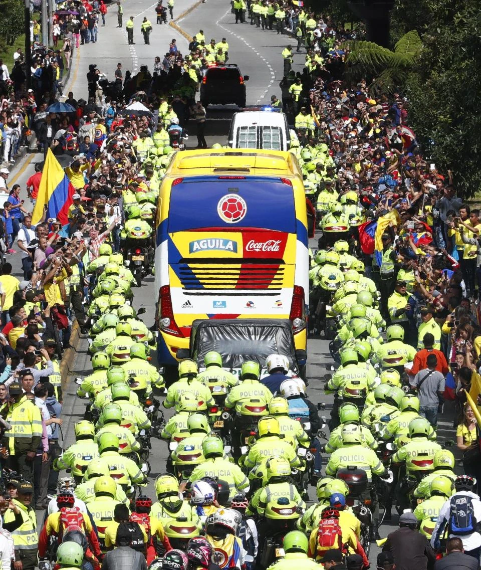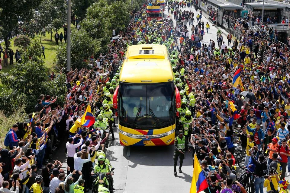 Rất đông người đứng dọc trên các đường phố thủ đô Bogota chờ đón chiếc xe buýt chở đội tuyển Colombia.