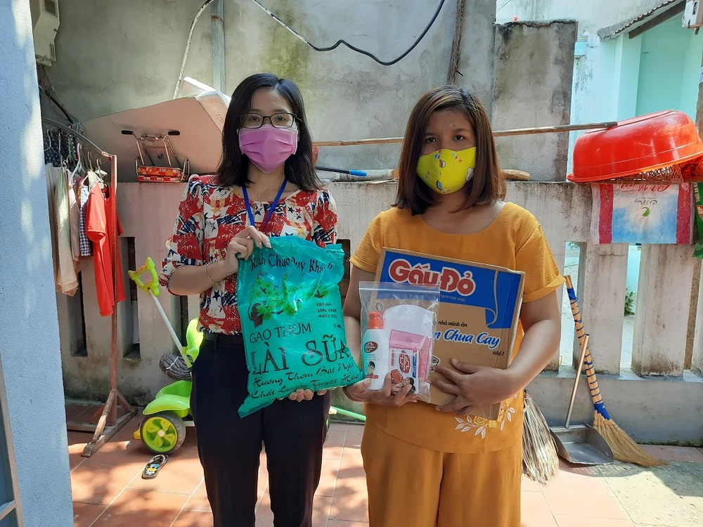 Hội Liên hiệp Phụ nữ phường Thọ Quang hỗ trợ gạo cho chị Bích. Ảnh: HPN