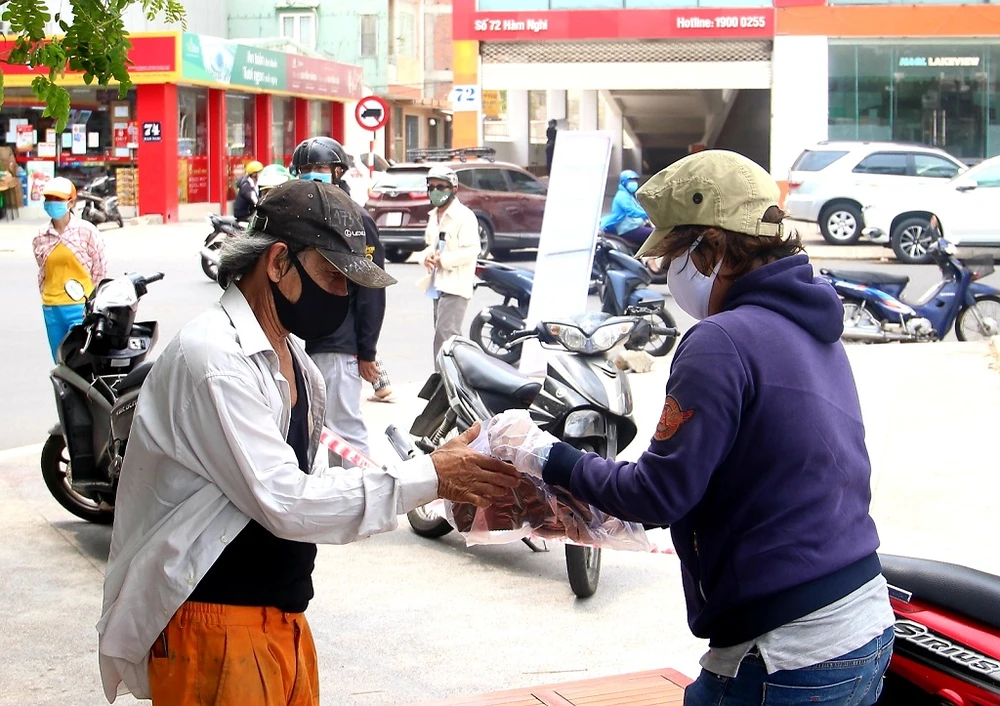 Hiện CLB tổ chức phát cơm mỗi ngày tại năm điểm trên địa bàn quận Thanh Khê và Hải Châu. Trước mắt hoạt động này sẽ kéo dài đến hết ngày 15-4. Ảnh: TA