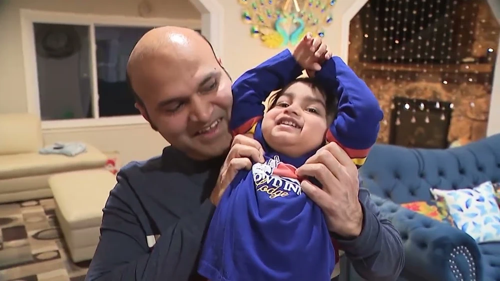Cậu bé Ayaansh 22 tháng tuổi cùng bố của mình Pramod Kumar. Ảnh: YAHOO NEWS