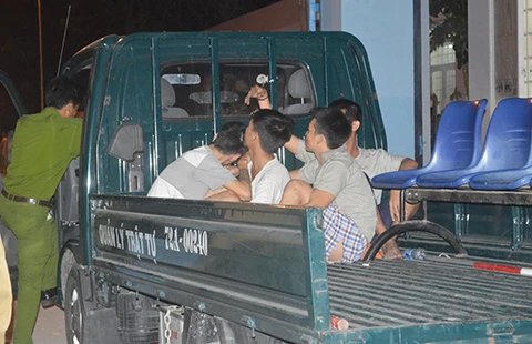 Các học viên bị công an đưa trở lại trung tâm. Ảnh: TRÙNG KHÁNH
