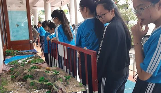 Tiết dạy văn bản Những ngôi sao xa xôi (Lê Minh Khuê) tại Trường THCS Lê Quý Đôn, quận 3, TP.HCM được học sinh yêu thích khi tự các em tạo mô hình đường Trường Sơn, hang đá giữa rừng... Giáo viên thì lồng ghép thành công thiết bị dạy học thông minh (tivi thông minh và máy tính bảng). Ảnh: CTV