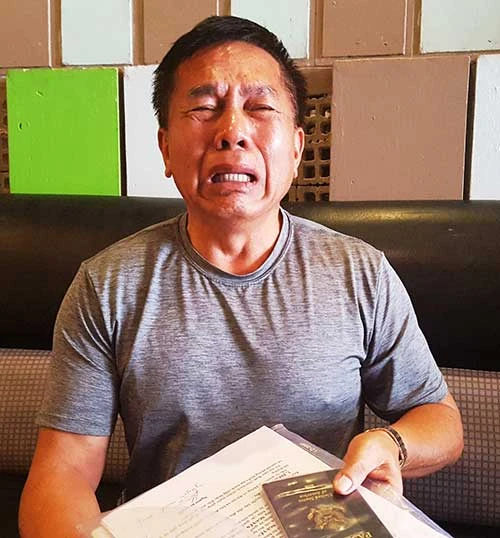 Ông Nguyễn Minh Hùng khóc cho rằng bị thiệt hại nặng do bị cấm xuất cảnh. Ảnh: TẤN LỘC